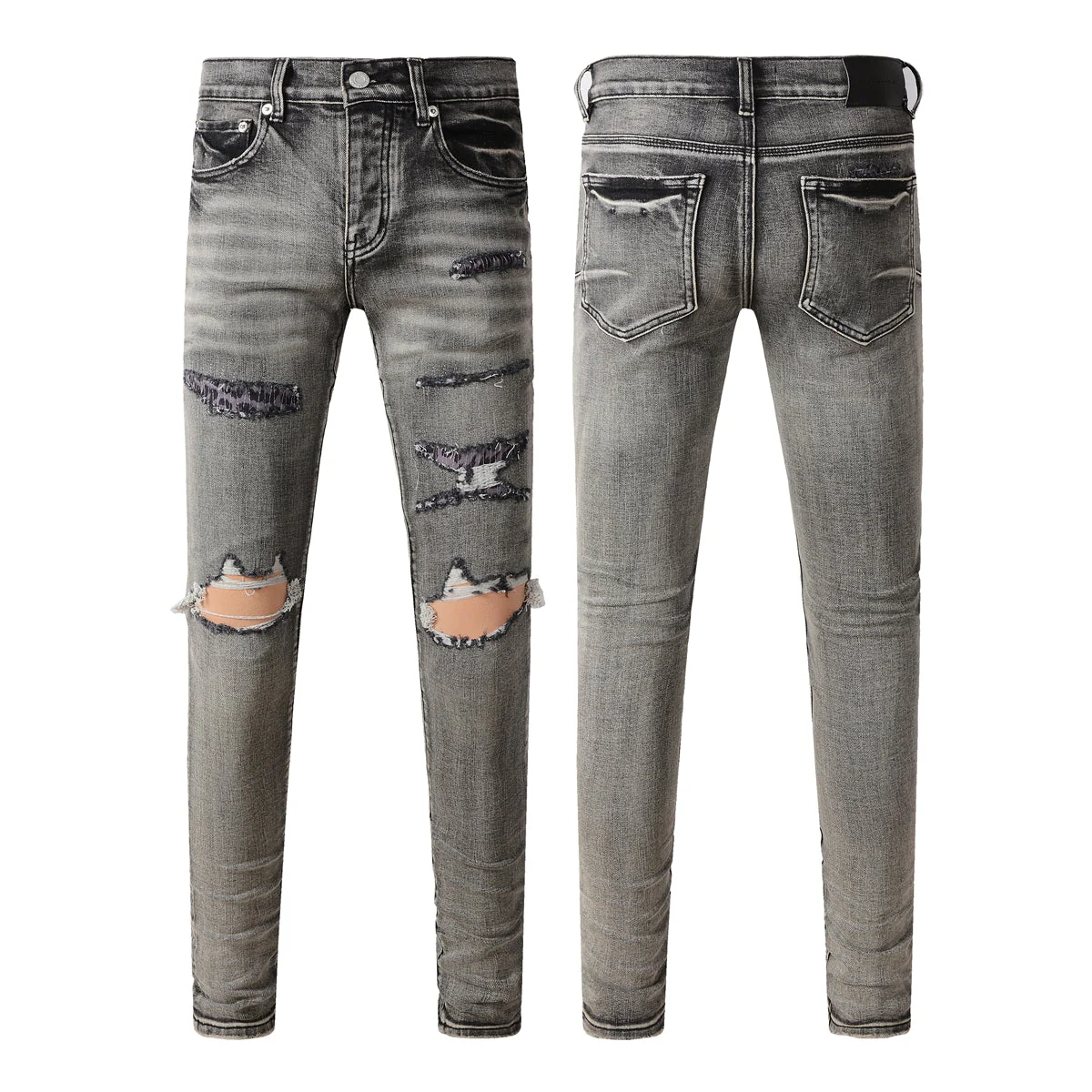 Men Classic Streetwear Jeans Distressed Black Grey Ripped Skinny 9068
