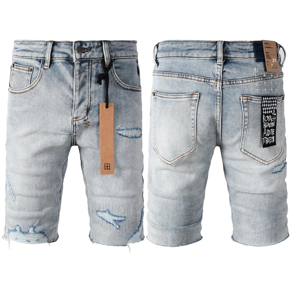 Men's Vintage Light Wash Ripped Denim Shorts with Raw Cut Hem and Distressed Details 2003